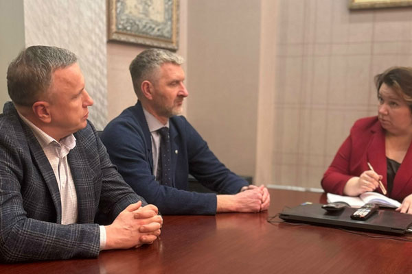 Главный врач МОКМЦ Евгений Юрьевич Тарбаев и заместитель главного врача по акушерству и гинекологии, руководитель Перинатального центра Александр Валерьевич Залесный провели рабочую встречу с и.о. ректора Мурманского арктического университета Марией Александровной Князевой.